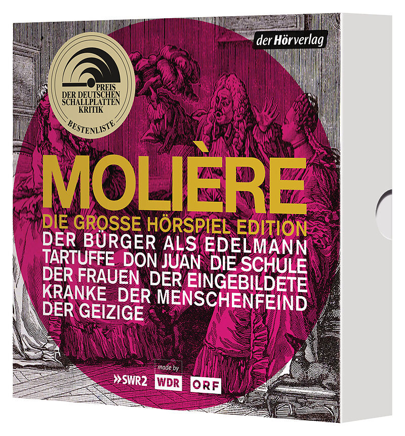 Die großen Komödien von Molière, alle in einer Box Der Bürger, der sich lächerlich macht, um in höheren Kreisen anerkannt zu werden. Der Familienvater, der sein Erbe vertrauensselig einem Hochstapler überlässt. Der Hypochonder, der naiv jedem Arzt Glauben sche...