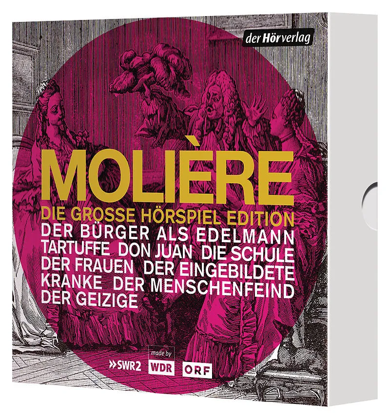 Die großen Komödien von Molière, alle in einer Box Der Bürger, der sich lächerlich macht, um in höheren Kreisen anerkannt zu werden. Der Familienvater, der sein Erbe vertrauensselig einem Hochstapler überlässt. Der Hypochonder, der naiv jedem Arzt Glauben sche...