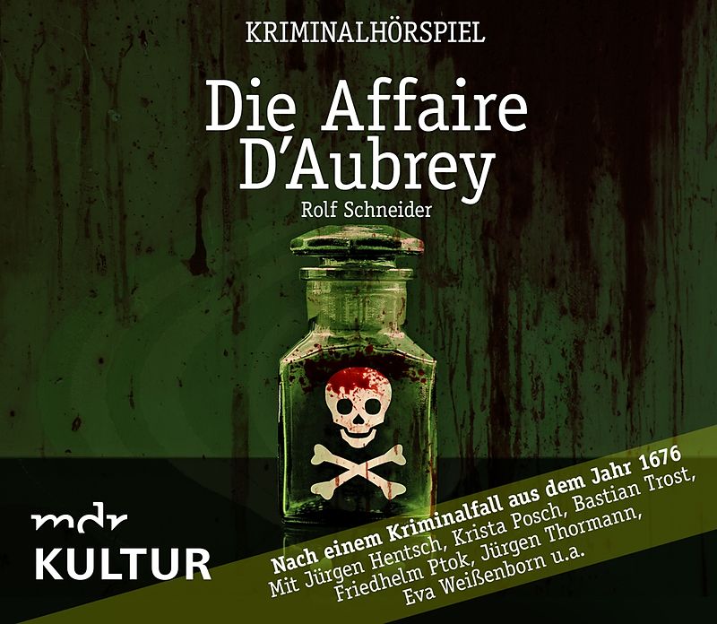 Im Jahr 1676 wird Paris von unzähligen Giftmorden heimgesucht. Gattinnen entledigen sich ihren Gatten, Eifersüchtige schaffen Nebenbuhler aus dem Weg und Erbschaften werden mit dem "poudre des succession" erschlichen. Verdächtige landen in der Bastille und Fehlentscheidungen sind an der Tagesordnung. Auch die Familie D'Aubrey, die sich in den höchsten Adelskreisen befindet, bleibt nicht verschont: Drei männliche Mitglieder der Familie sterben durch das Gift. Desgrais, ein Gefreiter der Pariser Polizei, befasst sich gegen die Anweisungen seines Vorgesetzten, mit der Aufklärung des Falles. Bei seinen Ermittlungen stößt er auf die Leiche eines Alchemisten. Hat er das Gift, das ganz Paris in Angst und Schrecken versetzt, in seinem Laboratorium hergestellt? Und hat die schöne Marie de Brinvillier, geborene D'Aubrey, sich an dem Gift des Alchemisten bedient? Desgrais macht seine Ermittlungen öffentlich, da die Tatsache, dass in der nächsten Nähe des französischen Sonnenkönigs immer selbstloser mit Gift hantiert wird, nicht länger verborgen bleiben kann. Marie wird des Mordes angeklagt und hingerichtet. Doch die Giftmorde gehen weiter. "Die Affäre D'Aubrey" - ein Hörspiel des Schriftstellers Rolf Schneider, geboren 1932 in Chemnitz. Für sein Hörspiel "Zwielicht" erhielt Schneider 166 den Hörspielpreis der Kriegsblinden. Diverse veröffentlichte Erzählungen und Romane begleiten seit Jahren seine Arbeit für das Theater, Funk und Fernsehen.