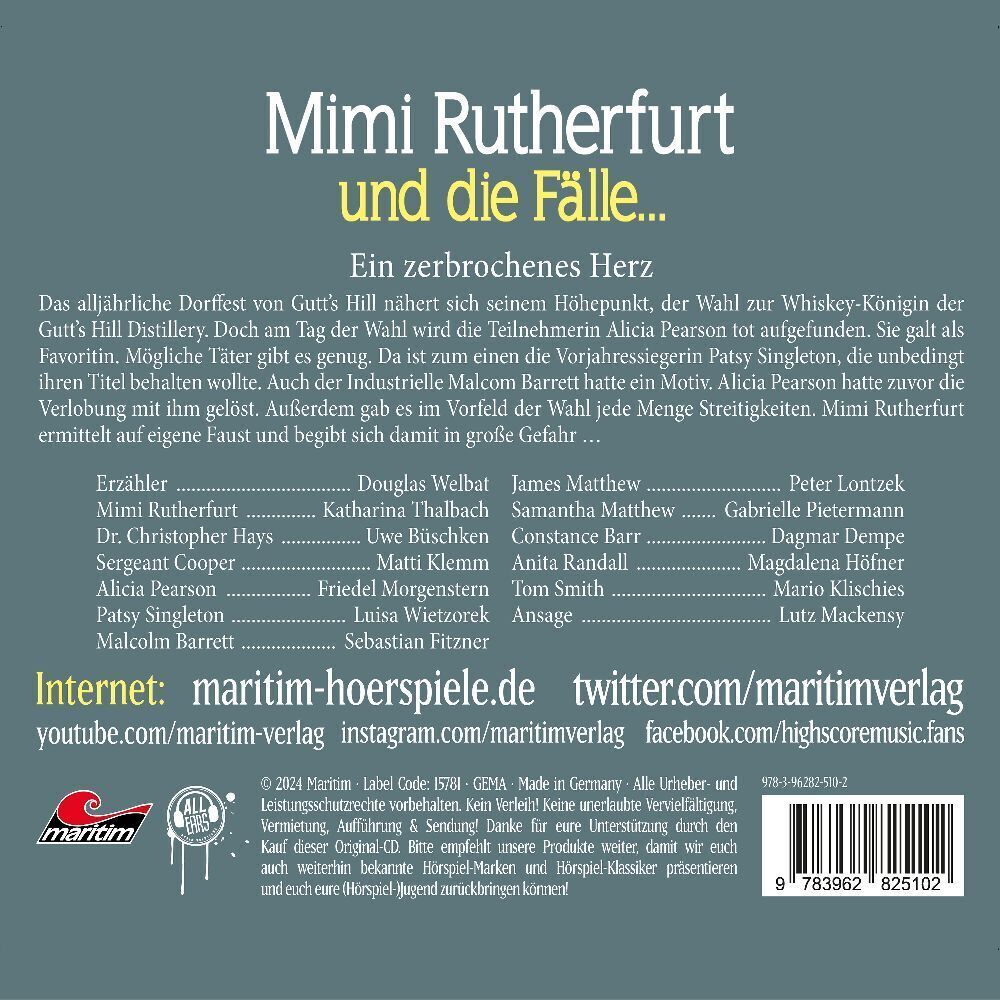 | 12 | Mimi Rutherfurt Und Die Fälle: Ein zerbrochenes Herz (Folge 62) | 03:00 |