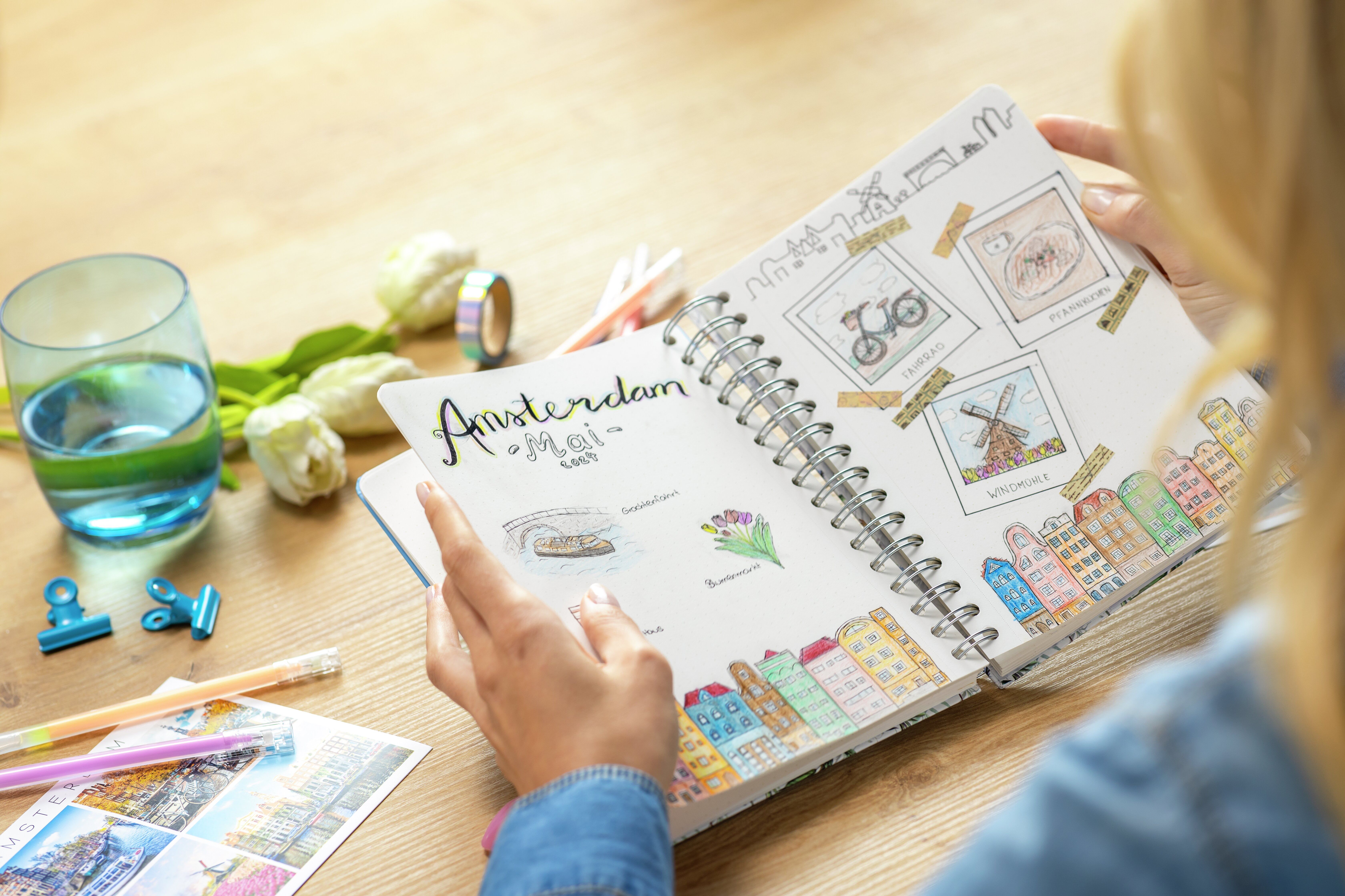 Werden Sie Handlettering-Profi - mit dem schönen Jolie Spiral-Notizbuch "Summer Breeze" im Format ca. A5 (16,80 x 21,50 x 2,80 cm) mit 240 Seiten (dotted, 120 g/m², alle Blätter perforiert). Der stabile Hardcover-Einband in pink/sandbraun/gelb/aquamarin garant...