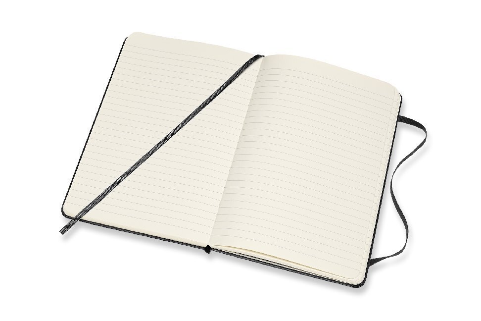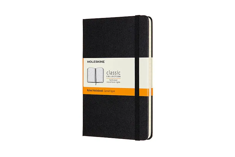 Klein genug, um in jede Handtasche zu passen, groß genug für die größten Ideen. Das neue mittelgroße Klassik Notizbuch von Moleskine schließt abgerundete Ecken ein, um es vor abgestoßenen Ecken zu schützen, und ein Gummiband zum Verschließen, um Ihre handgesch...