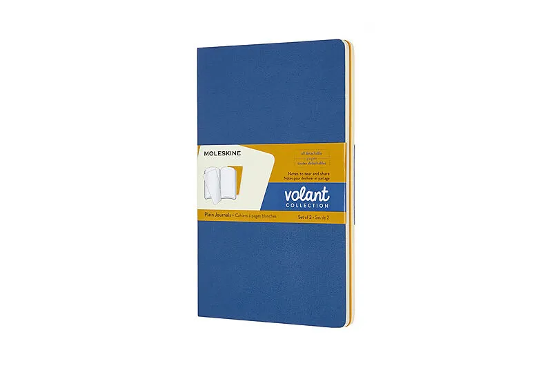 Moleskine Volant L/A5, 2x Set, Plain, Soft Cover, Forget-Me-Not Blue, Amber Yellow