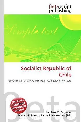 Please note that the content of this book primarily consists of articles available from Wikipedia or other free sources online. Socialist Republic of Chile (June 4, 1932 - September 13, 1932) (Spanish: República Socialista de Chile) was a short-lived political...