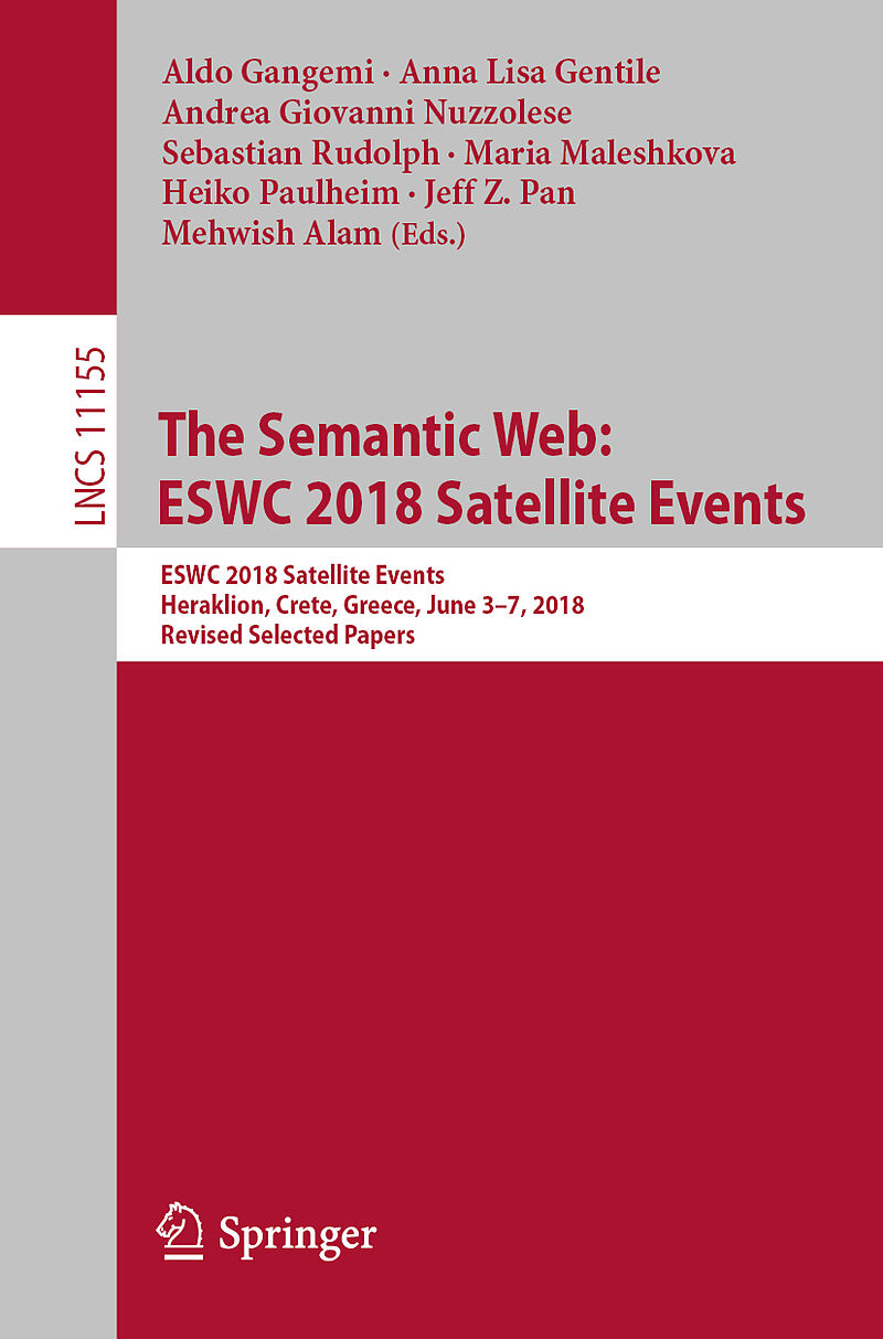 Poster and Demo Papers.- Finding Unexplainable Triples in an RDF Graph.- ATU-DSS: Knowledge-Driven Data Integration and Reasoning for Sustainable Subsurface Inter-Asset Management.- Deep Learning and Sentiment Analysis for Human-Robot Interaction.- Pseudo-Random ALC Syntax Generation.- A Protégé Plugin for Annotating OWL Ontologies with OPLa.- An Editor that Uses a Block Metaphor for Representing Semantic Mappings in Linked Data.- A Diagrammatic Approach for Visual Question Answering Over Knowledge Graphs.- Simplified SPARQL REST API - CRUD on JSON Object Graphs via URI Paths.- Hate Speech Detection on Twitter: Feature Engineering v.s. Feature Selection.- Incremental Data Partitioning of RDF Data in SPARK.- Developing an Ontology for Curriculum & Syllabus.- Computer-assisted Ontology Construction System: Focus on Bootstrapping Capabilities.- Matching Offerings and Queries on an Internet of Things Marketplace.- Exploiting Equivalence to Infer Type Subsumption in Linked Graphs.- Speleothem - An Information System for Caves Based on Semantic Web Technologies.- M-CREAM: A Tool for Creative Modeling of Emergency Scenarios in Smart Cities.- Context Spaces as the Cornerstone of a Near-Transparent & Self-Reorganizing Semantic Desktop.- SeGoFlow: A Semantic Governance Workflow Tool.- Image User Profiling with Knowledge Graph and Computer Vision.- reboting.com: Towards geo-search and visualization of Austrian Open Data.- Demoing Platypus - a Multilingual Question Answering Platform for Wikidata.- Knowledge Graph Embeddings with node2vec for Item Recommendation.- REDI: A Linked Data-powered Research Networking Platform.- Combining P-Plan and the REPRODUCE-ME Ontology to Achieve Semantic Enrichment of Scientific Experiments using Interactive Notebooks.- A Scalable Consent, Transparency and Compliance Architecture.- Enabling Conversational Tourism Assistants through Schema.org Mapping.- A Workflow for generation of LDP.- Supporting sustainable publishing and consuming of live Linked Time Series Streams.- TagTheWeb: Using Wikipedia Categories to Automatically Classify Resources on the Web.- ViziQuer: a Web-based Tool for Visual Diagrammatic Queries over RDF Data.- EventKG+TL: Creating Cross-Lingual Timelines from an Event-Centric Knowledge Graph.- ABSTAT 1.0: Compute, Manage and Share Semantic Profiles of RDF Knowledge Graphs.- Entity Linking in 40 Languages using MAG.- Ulysses: an Intelligent client for replicated Triple Pattern Fragments.- Bridging Web APIs and Linked Data with SPARQL Micro-Services.- Grasping Metaphors: Lexical Semantics in Metaphor Analysis.- The Unified Code for Units of Measure in RDF: cdt:ucum and other UCUM Datatypes.- Deep Linking Desktop Resources.- VocRec: An Automated Vocabulary Recommender Tool.- Declarative Rules for Linked Data Generation at your Fingertips.- Modeling and Reasoning over Data Licenses.- PhD Symposium Track.- Recommending spatial classes for entity interlinking in the Web of Data.- Ontology ABox Comparison.- Modeling and Querying Versioned Source Code in RDF.- Linkflows: enabling a web of linked semantic publishing workflows.- Adaptive anomaly detection and root cause analysis by fusing semantics and machine learning.- Question Answering over Knowledge Bases.- Semantic Query Federation for Scalable Security Log Analysis.- Assessing the Quality of owl:sameAs Links.- SHARK: A Test-driven Framework for Design and Evolution of Ontologies.- 3rd Workshop on Geospatial Linked Data.- Using Linked Open Geo Boundaries for Adaptive Delineation of Functional Urban Areas.- 4th Workshop on Sentic Computing, Sentiment Analysis, Opinion Mining, and Emotion Detection.- A Study of the Similarities of Entity Embeddings Learned from Different Aspects of a Knowledge Base for Item Recommendations.- 2nd Workshop on Querying the Web of Data.- MAS: A Corpus of Tweets for Marketing in Spanish.- 4th Workshop on Social Media World Sensors.- Benchmarking Commercial RDF Stores with Publications Office Dataset.- 1st Workshopon Semantic Web of Things for Industry 4.0.- Such a wonderful Place: extracting sense of place from Twitter.- 3rd Workshop on Semantic Web for Cultural Heritage.- IoT Semantic Interoperability With Device Description Shapes.- Exploring Linked Data For The Automatic Enrichment of Historical Archives.- 4th Workshop on Managing the Evolution and Preservation of the Data Web.- nlGis: A Use Case in Linked Historic Geodata.- 2nd Semantic Web solutions for large-scale biomedical data analytics.- Distributed RDF archives Querying with Spark.- 1st Workshop on Deep Learning for Knowledge Graphs and Semantic Technologies.- Assessing FAIR Data Principles against the 5-Star Open Data Principles.- Translational Models for Item Recommendation.