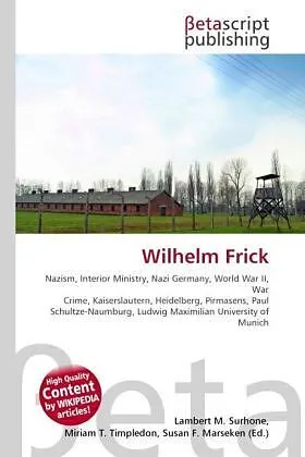 High Quality Content by WIKIPEDIA articles! Wilhelm Frick (12 March 1877 16 October 1946) was a prominent Nazi official, serving as Minister of the Interior of the Third Reich. After the end of World War II, he was executed for war crimes. Frick was born in Al...