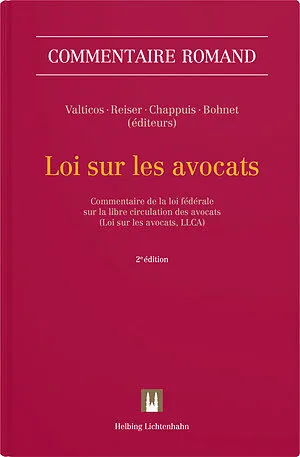 La référence du barreau La deuxième édition du commentaire romand de la LLCA commente les dispositions de droit fédéral, qui pour l'essentiel régissent depuis le 1er juin 2002 l'exercice de la profession d'avocat en Suisse. Intervenant après vingt années d'exi...