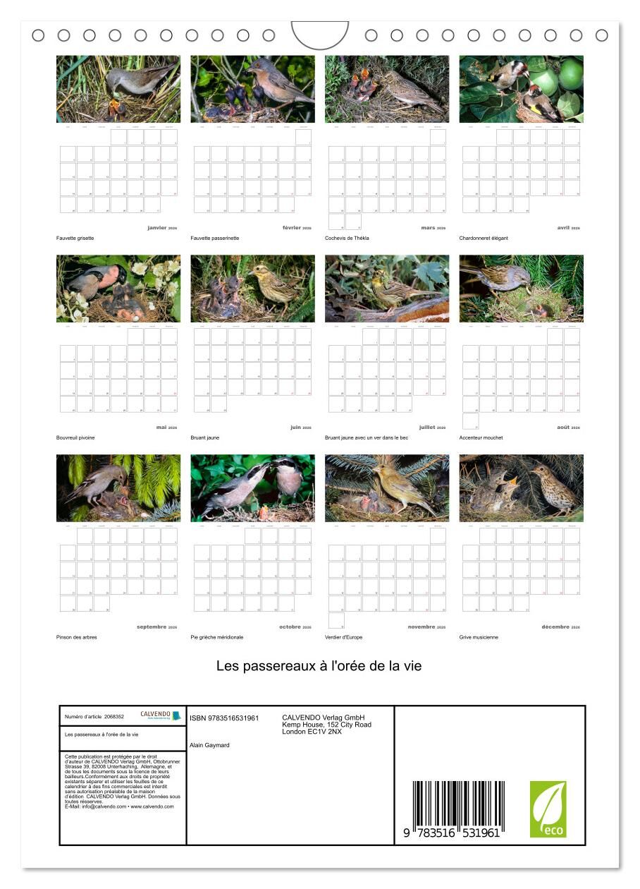 Les passereaux à l'orée de la vie (Calendrier mural 2026 DIN A4 horizontal), CALVENDO calendrier mensuel