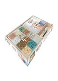 Tout le matériel pour réaliser des bracelets à messages à l'aide de perles lettres ainsi que d'autres de formes et de couleurs variées.