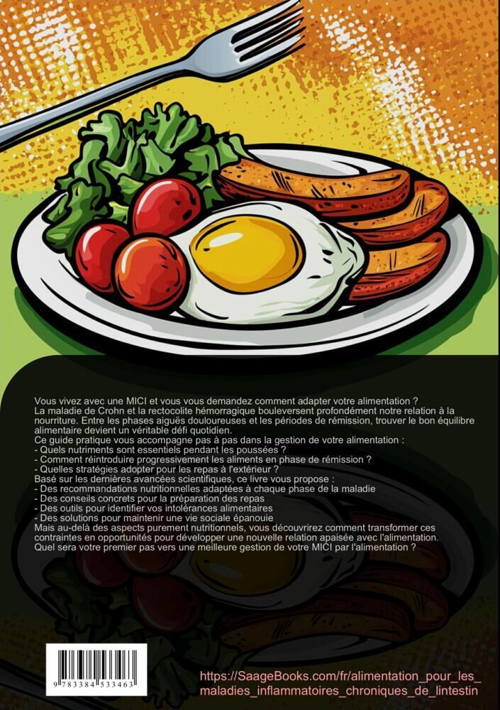 Ce guide pratique aborde en détail la relation complexe entre l'alimentation et les Maladies Inflammatoires Chroniques de l'Intestin (MICI), notamment la Maladie de Crohn et la Rectocolite hémorragique.Structuré en plusieurs parties, l'ouvrage c...Ce guide pratique aborde en détail la relation complexe entre l'alimentation et les Maladies Inflammatoires Chroniques de l'Intestin (MICI), notamment la Maladie de Crohn et la Rectocolite hémorragique.Structuré en plusieurs parties, l'ouvrage commence par expliquer les fondamentaux nutritionnels spécifiques aux maladies intestinales, en détaillant les besoins en nutriments essentiels et les processus digestifs altérés par ces pathologies.La section sur le choix et la préparation des aliments propose des recommandations concrètes sur:- Les aliments de base bien tolérés- Les groupes d'aliments à surveiller- Les méthodes de cuisson adaptéesUne attention particulière est portée aux stratégies nutritionnelles selon les phases de la maladie:- Alimentation pendant les poussées aiguës- Réintroduction progressive des aliments- Adaptation nutritionnelle à long termeLe guide aborde également:- Les compléments nutritionnels appropriés- L'utilisation des probiotiques- La tenue d'un journal alimentaireLa dernière partie traite des aspects pratiques:- Organisation des repas au quotidien- Conseils pour les repas à l'extérieur- Gestion des situations socialesCe guide offre des solutions concrètes pour adapter son alimentation aux MICI, en s'appuyant sur des données scientifiques actuelles et des conseils pratiques pour améliorer la qualité de vie des patients.Ce livre a été créé en utilisant des technologies innovantes telles que l'Intelligence Artificielle ainsi que des outils spécialement développés - par exemple, pour la recherche d'idées, la recherche d'informations, l'écriture, la relecture, l'assurance qualité et la conception d'illustrations décoratives.Ainsi, nous souhaitons vous offrir une expérience de lecture particulièrement cohérente, moderne et d'une qualité encore supérieure.