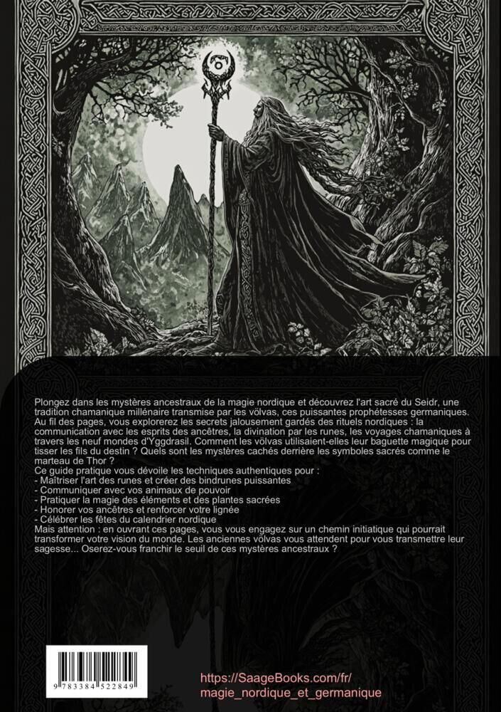 Plongez dans l'univers fascinant de la magie nordique et découvrez les pratiques ancestrales des peuples germaniques à travers cet ouvrage approfondi.Le seidr, art magique pratiqué par les völvas (prophétesses nordiques), est présenté dans toute sa riches...Plongez dans l'univers fascinant de la magie nordique et découvrez les pratiques ancestrales des peuples germaniques à travers cet ouvrage approfondi.Le seidr, art magique pratiqué par les völvas (prophétesses nordiques), est présenté dans toute sa richesse et sa complexité. Ce livre explore les fondements de cette tradition spirituelle unique, transmise depuis les temps anciens.Vous découvrirez:- Les bases de la magie nordique et ses racines historiques- Les techniques chamaniques de voyage entre les mondes- L'art de la divination et du travail avec les runes- La connexion avec les esprits de la nature et les animaux de pouvoir- Les rituels saisonniers et les célébrations traditionnelles- Le travail avec les ancêtres et la force des lignées familialesChaque chapitre offre:- Des explications détaillées sur les pratiques rituelles- Des exercices pratiques pour développer vos capacités- Des informations sur les symboles sacrés et leur utilisation- Des techniques de protection et de purification- Des conseils pour créer et consacrer vos outils magiquesCe guide vous accompagne pas à pas dans l'exploration du seidr, en respectant les traditions tout en les adaptant à notre époque. Il aborde aussi bien les aspects théoriques que pratiques, permettant une compréhension profonde de la spiritualité nordique.Que vous soyez débutant ou pratiquant expérimenté, vous trouverez dans cet ouvrage les clés pour explorer et pratiquer la magie nordique de manière authentique et respectueuse.Ce livre a été créé en utilisant des technologies innovantes telles que l'Intelligence Artificielle ainsi que des outils spécialement développés - par exemple, pour la recherche d'idées, la recherche d'informations, l'écriture, la relecture, l'assurance qualité et la conception d'illustrations décoratives.Ainsi, nous souhaitons vous offrir une expérience de lecture particulièrement cohérente, moderne et d'une qualité encore supérieure.