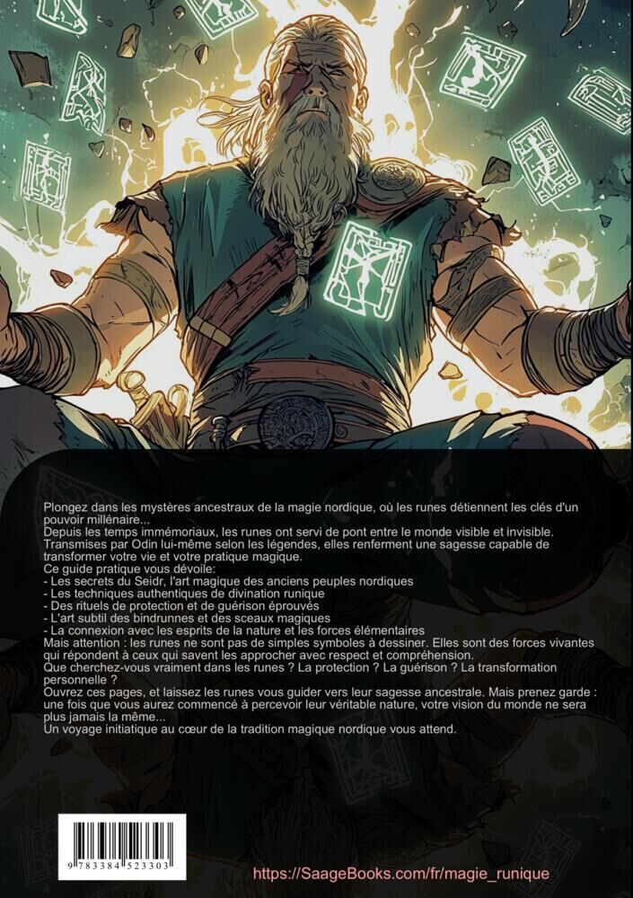 Plongez dans l'univers fascinant de la magie nordique avec ce guide approfondi sur la magie des runes et le seidr. Cet ouvrage vous accompagne dans la découverte des pratiques ancestrales des peuples nordiques.Le livre commence par une exploration détaill...Plongez dans l'univers fascinant de la magie nordique avec ce guide approfondi sur la magie des runes et le seidr. Cet ouvrage vous accompagne dans la découverte des pratiques ancestrales des peuples nordiques.Le livre commence par une exploration détaillée des fondements de la magie runique, présentant l'origine des runes et leur connexion avec la mythologie nordique. Vous découvrirez les traditions magiques germaniques et le seidr, une forme ancienne de magie pratiquée par les völvas.La section pratique vous guide dans la création et l'utilisation des outils runiques, la préparation des rituels et leur exécution. Vous apprendrez à choisir les matériaux appropriés, à consacrer vos instruments et à créer un espace sacré pour votre pratique de la magie nordique.Une partie importante est consacrée aux méthodes divinatoires, incluant différentes techniques de lecture des runes, l'interprétation des symboles et le développement de la vision intuitive. Les approches méditatives et le travail avec les états de conscience modifiés sont également abordés.Le livre traite ensuite des applications magiques concrètes : création de protections, rituels de guérison, travail de manifestation. Vous découvrirez comment utiliser les runes pour la protection de votre foyer, la création d'amulettes et les soins énergétiques.Les techniques avancées présentées en fin d'ouvrage abordent la création de liaisons runiques complexes, la magie élémentaire et les rituels transformatifs. Ces chapitres permettent d'approfondir votre pratique et d'explorer les aspects plus subtils de la magie des runes.Chaque section est enrichie de schémas, de tableaux et de graphiques permettant une meilleure compréhension des concepts présentés.Ce livre a été créé en utilisant des technologies innovantes telles que l'Intelligence Artificielle ainsi que des outils spécialement développés - par exemple, pour la recherche d'idées, la recherche d'informations, l'écriture, la relecture, l'assurance qualité et la conception d'illustrations décoratives.Ainsi, nous souhaitons vous offrir une expérience de lecture particulièrement cohérente, moderne et d'une qualité encore supérieure.