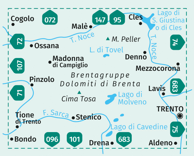 Ausstattung der Wanderkarte Brentagruppe, Weltnaturerbe, Dolomiti di Brenta: