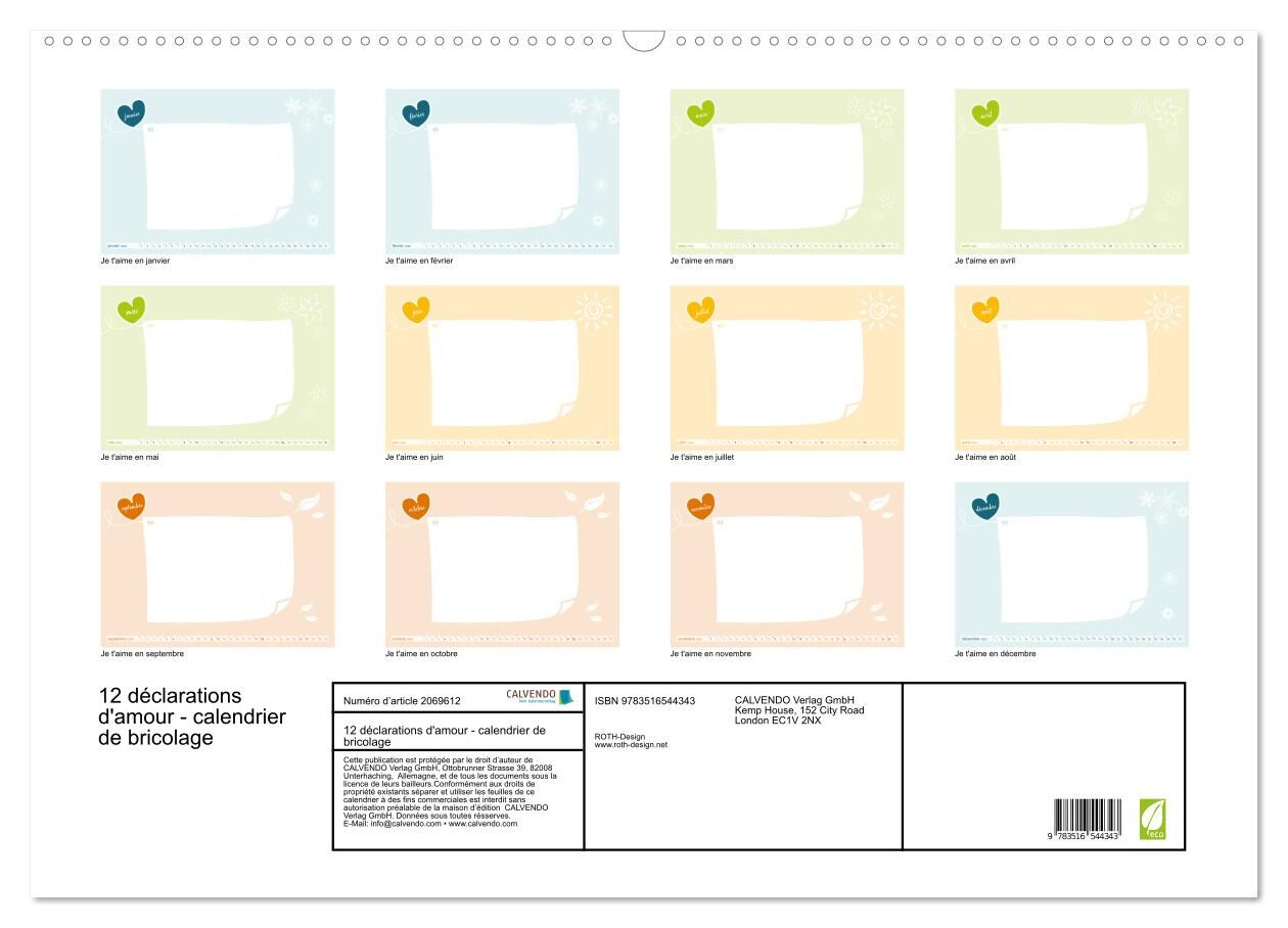 12 déclarations d'amour - calendrier de bricolage (Calendrier mural 2026 DIN A2 vertical), CALVENDO calendrier mensuel