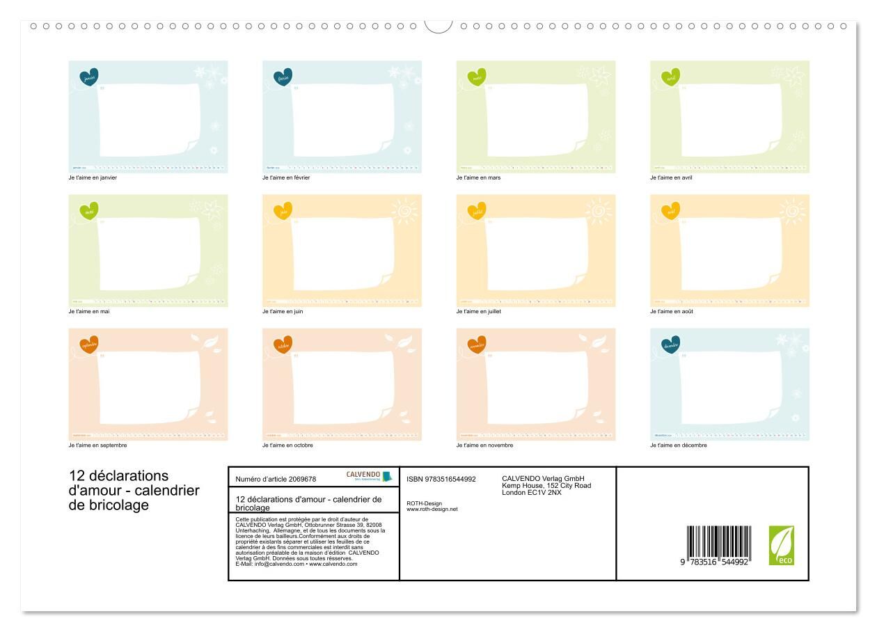 12 déclarations d'amour - calendrier de bricolage (Calendrier mural 2026 DIN A2 vertical) calendrier de bureau