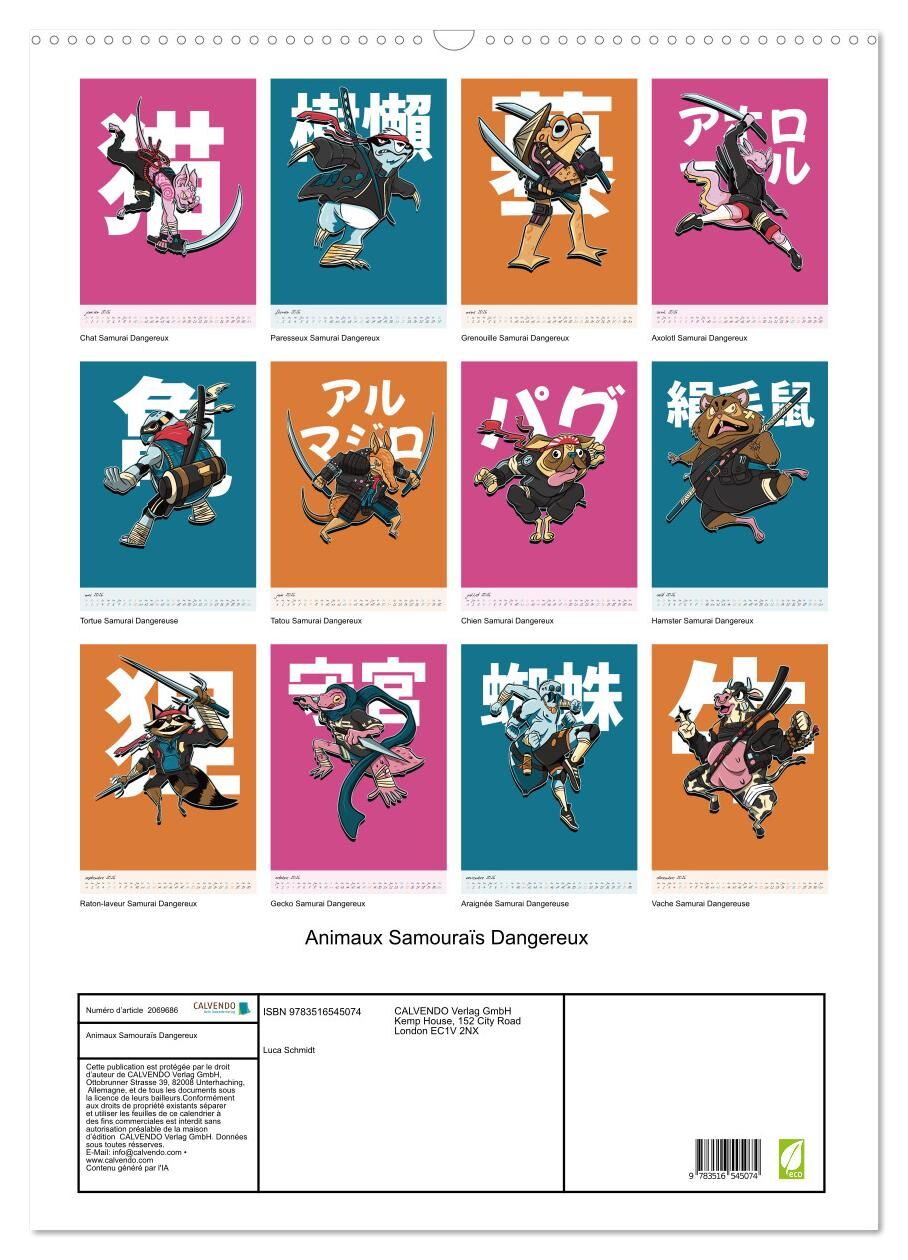 Animaux Samouraïs Dangereux (Calendrier mural 2026 DIN A2 horizontal), CALVENDO calendrier mensuel