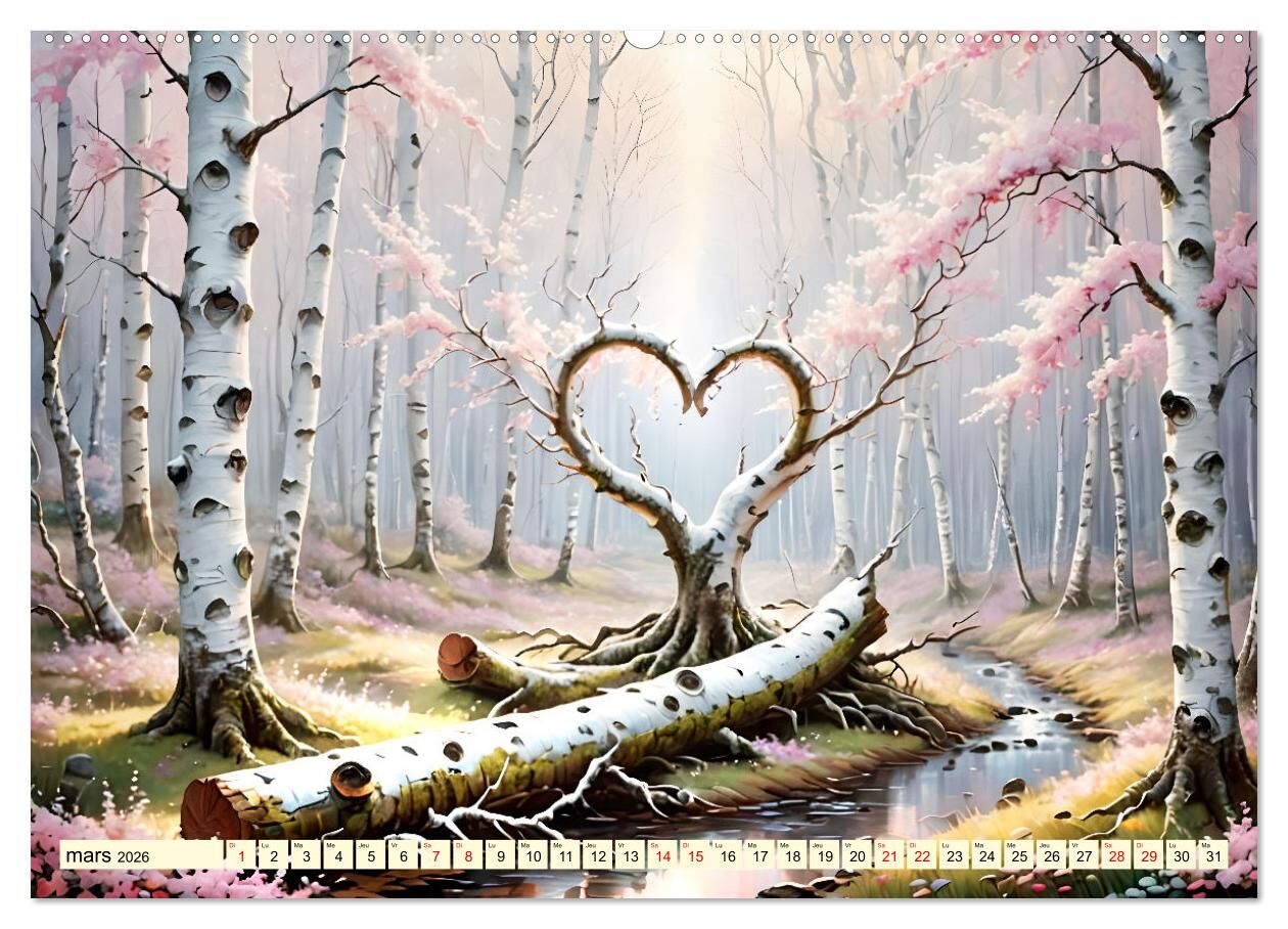 Découvrez le calendrier unique de la forêt de bouleaux, créé grâce à l'intelligence artificielle. Chaque image de ce calendrier montre l'impressionnante beauté d'une forêt de bouleaux dans laquelle les arbres forment tendrement un coeur. Revivez...Découvrez le calendrier unique de la forêt de bouleaux, créé grâce à l'intelligence artificielle. Chaque image de ce calendrier montre l'impressionnante beauté d'une forêt de bouleaux dans laquelle les arbres forment tendrement un coeur. Revivez chaque jour l'union harmonieuse de la nature et de l'amour et laissez-vous envoûter par la force de ce calendrier unique.