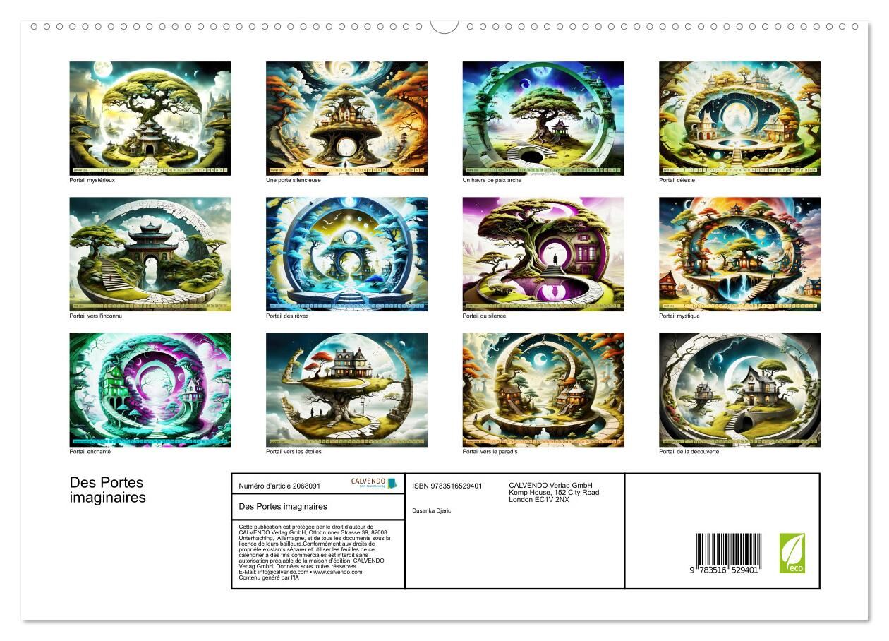 Bienvenue dans un monde où la nature se mêle mystérieusement à l'intelligence artificielle. Ce calendrier vous emmène dans un paysage fantastique où des portails de pierre indiquent le chemin vers un monde inconnu. Plongez dans ce monde mystérieux et lais...Bienvenue dans un monde où la nature se mêle mystérieusement à l'intelligence artificielle. Ce calendrier vous emmène dans un paysage fantastique où des portails de pierre indiquent le chemin vers un monde inconnu. Plongez dans ce monde mystérieux et laissez-vous envoûter par la beauté et la magie de cette création unique. Découvrez chaque jour une nouvelle dimension de la nature et vivez l'inimaginable dans votre propre maison.