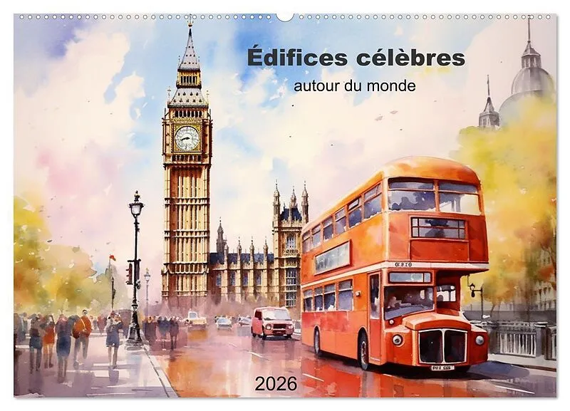 Édifices célèbres, autour du monde (Calendrier mural 2026 DIN A2 vertical), CALVENDO calendrier mensuel