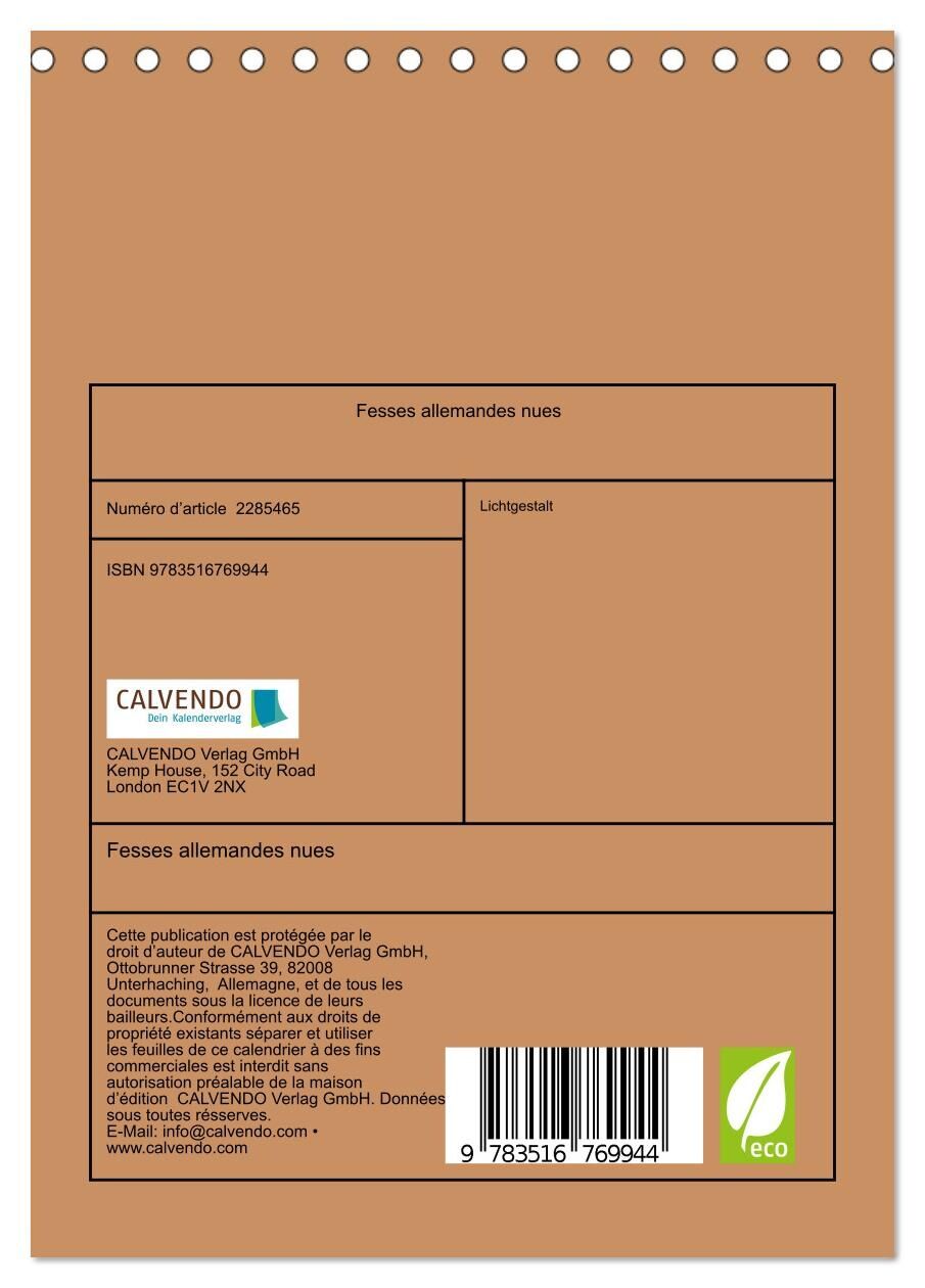 Fesses allemandes nues (Calendrier de bureau 2027 DIN A5 horizontal), CALVENDO calendrier mensuel