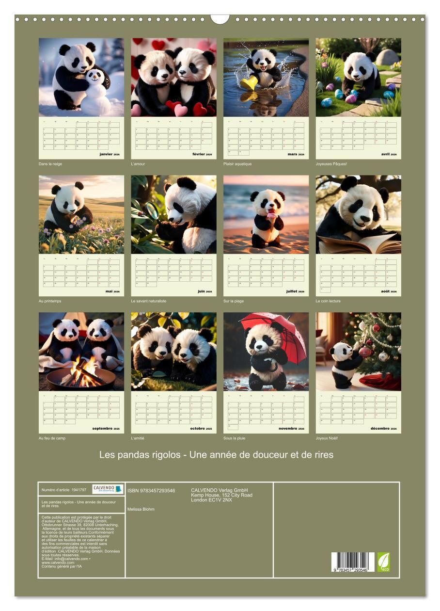 Plongez dans l'univers joyeux de «Les pandas rigolos - Une année de douceur et de rires». Ce calendrier vous accompagne tout au long de l'année avec ces adorables pandas, générés par IA, dans des situations hilarantes. Chaque mois, découvrez une nouv...