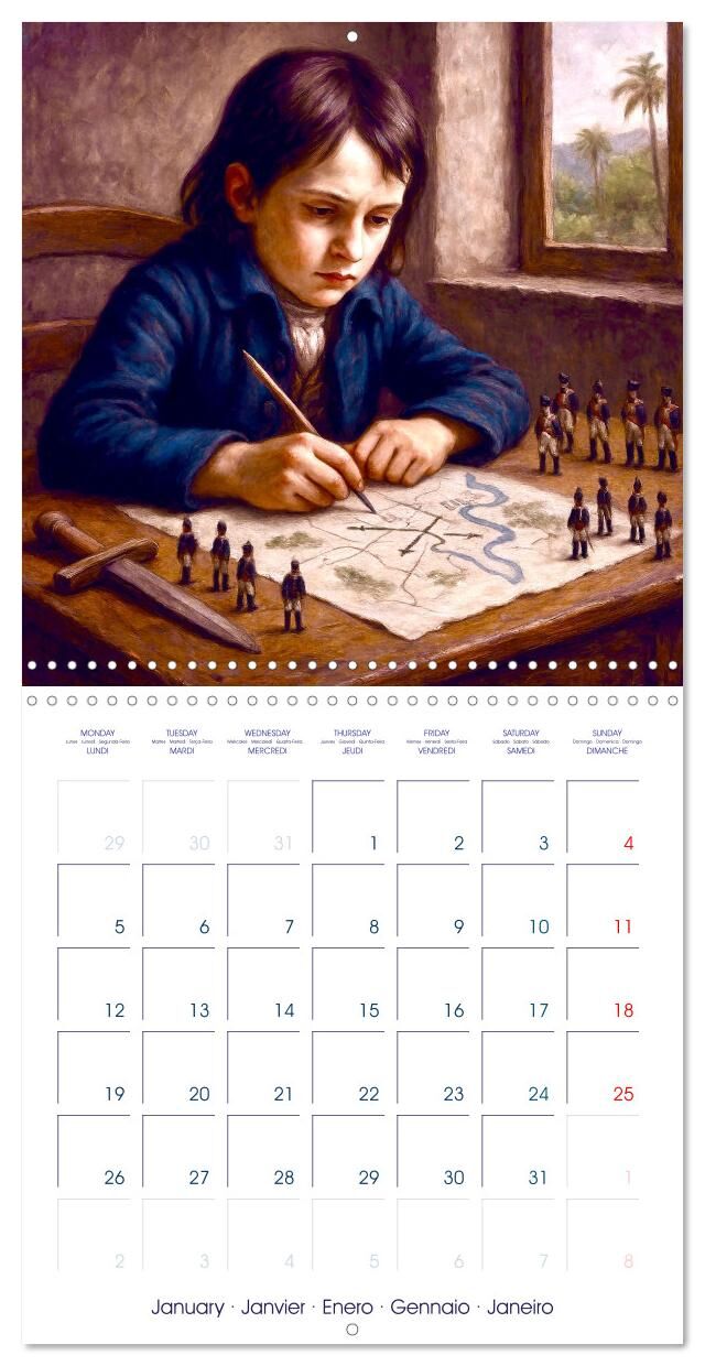 Plongez dans la vie mouvementée de Napoléon - du jeune cadet corse jusqu'au vieil empereur en exil. Dans ces scènes se déploie toute la dramaturgie de son destin tragique : ascension et gloire, amour et perte, triomphe et défaite.Ce calendrier impressionn...