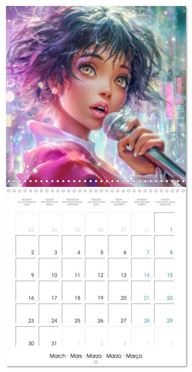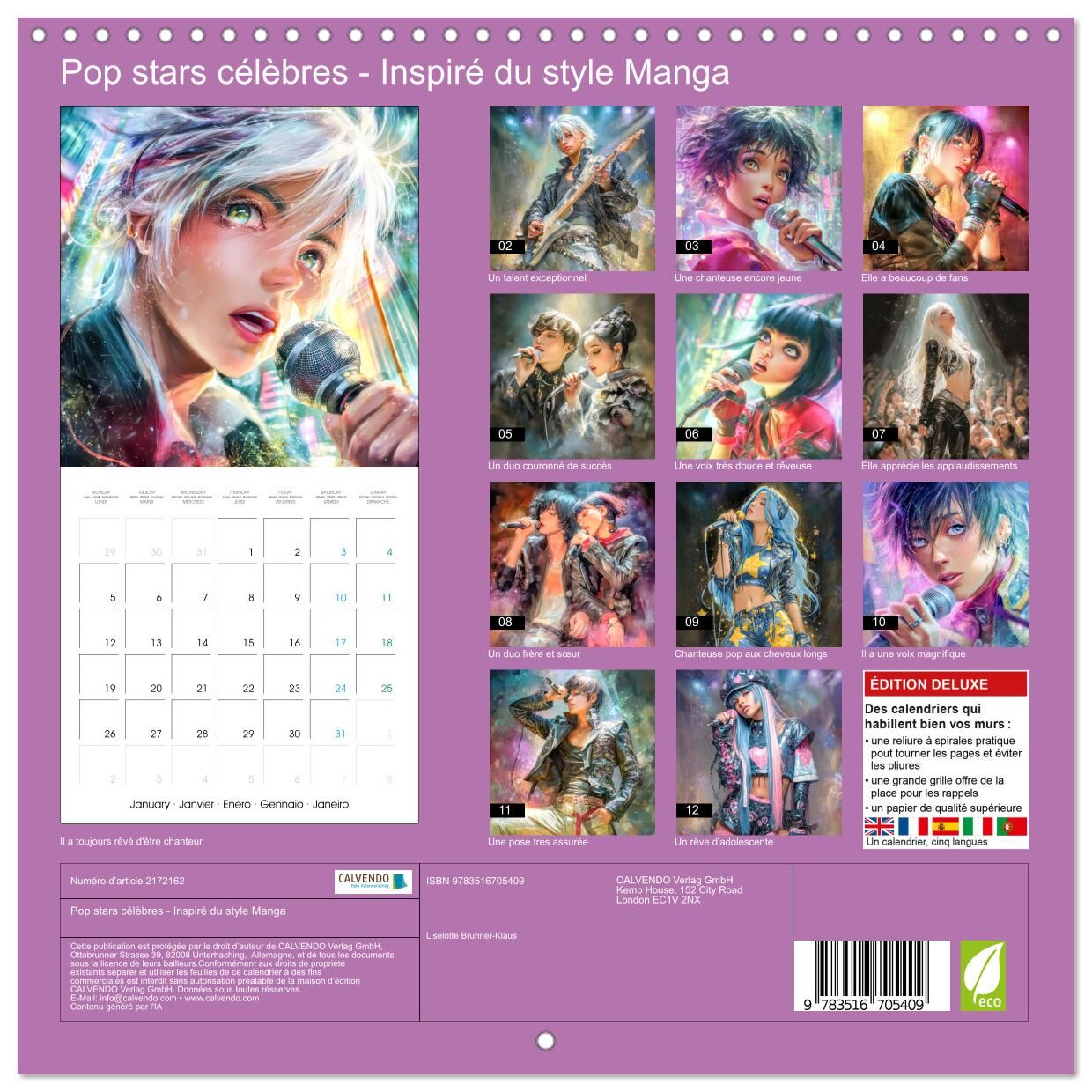 Pop stars célèbres - Inspiré du style Manga (Calendrier mural carré 2026 30x30 cm) Calendrier double avec une page pour vos prises de notes