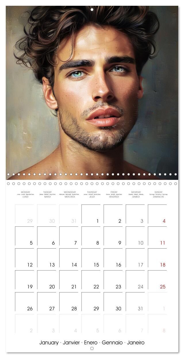 Chaque image capture la passion et l'intensité d'hommes au regard envoûtant et au charisme indéniable. Laissez-vous emporter par leur présence magnétique et leur sensualité irrésistible. Parfait pour égayer n'importe quel espace de vie et pour vous accompagner dans chaque moment de votre journée. CALVENDO vous propose un grand choix de calendrier broché avec les motifs les plus divers - ainsi, chacun trouvera le calendrier familial qui lui convient ! Ce calendrier décoratif est un cadeau idéal à faire en famille ou entre amis. Calendrier mensuel de qualité supérieure avec 12 magnifiques photos. L'environnement nous tient à cur. C'est pourquoi nous utilisons exclusivement du papier certifié FSC provenant de forêts gérées de manière écoresponsable. Nous évitons la surproduction et donc des quantités significatives de déchets, en produisant dans l'UE, à l'unité et sur demande. Nous réduisons nos distances de transport et assurons une logistique respectueuse de l'environnement. 14 pages dont 1 couverture | 12 pages mensuelles avec des motifs de photo magnifiques (partie supérieure) et une grande grille calendaire pour vos notices (partie inférieure) | 1 page d'index I format de 30 x 30 cm, et de 30 x 60 cm une fois ouvert Ce calendrier à succès a été réédité cette année avec les mêmes images et une grille calendaire mise à jour. Illustrations: Janvier: Sérénité masculine Février: Élégance naturelle Mars: Beauté authentique Avril: Confiance rayonnante Mai: Éclat intense Juin: Séduction subtile Juillet: Expression envoutante Août: Charme irrésistible Septembre: Regard perçant Octobre: Passion flamboyante Novembre: Mystère révélé Décembre: Sensualité captivante CLAIR - une grille calendaire qui offre beaucoup de place pour y garder une trace de toutes vos activités et noter des rendez-vous. S'organiser devient un vrai plaisir! PRATIQUE - format de 30 x 30 cm ou de 30 x 60 cm une fois ouvert. Grille calendaire internationale en 5 langues : anglais, espagnol, français, portugais et italien. DÉCORATIF - cet agenda carré double ne vous aide pas seulement à gérer votre quotidien, il embellit vos murs avec ses magnifiques photos. Un cadeau idéal. FLEXIBLE - il s'adapte à tous les types de stylo que vous choisissez d'écrire au stylo à bille ou au crayon à papier. DURABLE - réduction sensible des déchets grâce à une fabrication à l'unité, à la demande, sur papier certifié FSC respectueux de l'environnement, production dans l'UE, logistique respectueuse de l'environnement. Plongez dans un univers de charme et de séduction avec notre calendrier captivant, mettant en vedette douze visages masculins à couper le souffle. par l'auteur(e): Marie-Ange Pagnon