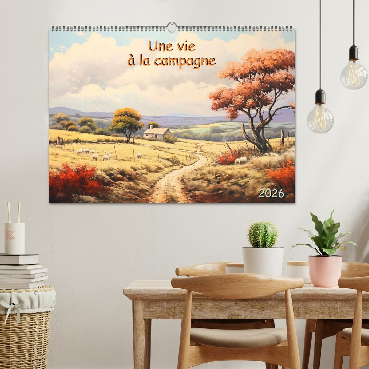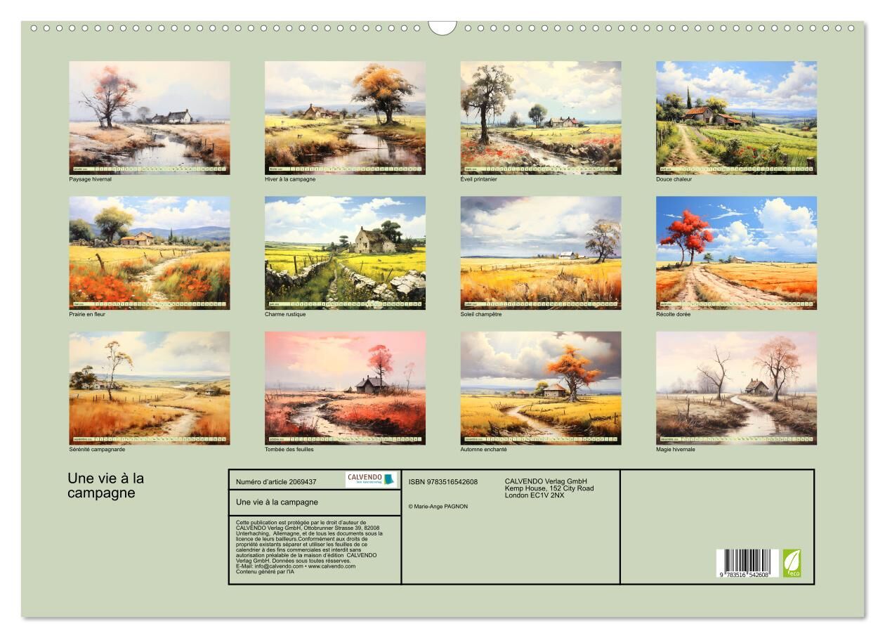 Chaque mois, plongez dans un monde de charme rural et d'évasion paisible avec ce calendrier illustré. Chaque page vous transporte dans une campagne pittoresque, où des maisons rustiques se blottissent près d'arbres majestueux, créant des scènes de be...