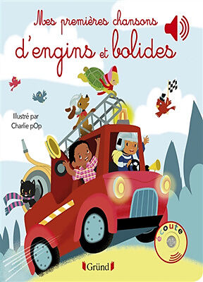 Six extraits de chansons consacrées aux voitures et autres moyens de transport à écouter avec des puces sonores : Un tracteur, Ma Torpédo, Le petit chemin de fer, Mon vélo, The wheels on the bus et Au feu les pompiers.