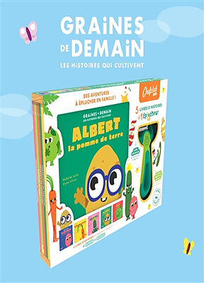 Un coffret qui réunit cinq histoires de fruits et de légumes. Avec des jeux et des recettes.