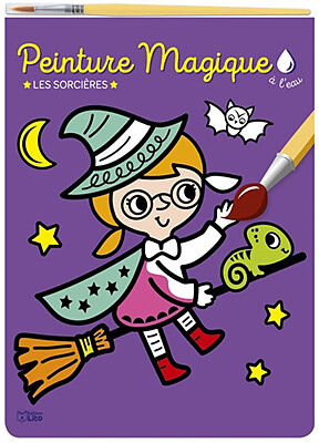 Détache la feuille du bloc, trempe le pinceau dans un verre d'eau et passe-le sur chaque motif pour faire apparaître les couleurs.