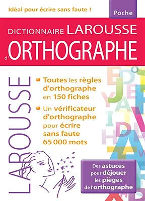 Dictionnaire Larousse d'orthographe Un ouvrage indispensable pour savoir écrire sans faute 65 000 mots et mémoriser facilement les règles essentielles de l'orthographe. Plus de 150 fiches claires et attrayantes, classées par ordre alphabétique, qui passent en...