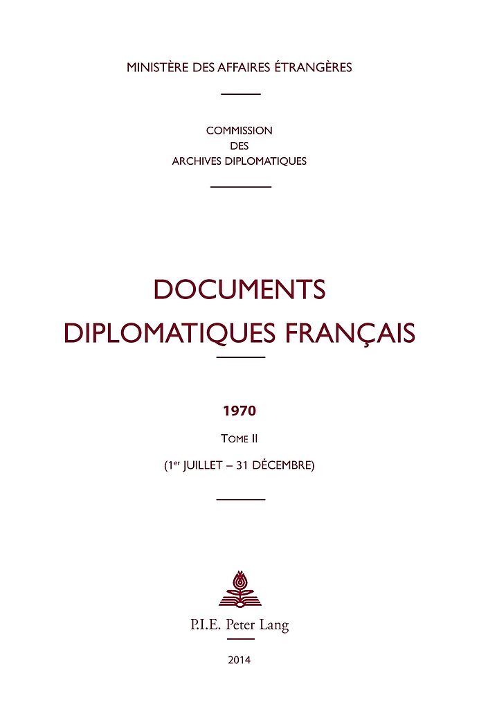 Les documents diplomatiques français du 2 e semestre de l'année 1970 abordent notamment la guerre froide ; la violence sous forme de terrorisme au Québec ; la révolte des Palestiniens de Jordanie, réprimée par le roi Hussein ; l' Ostpolitik du chance...Les documents diplomatiques français du 2 e semestre de l'année 1970 abordent notamment la guerre froide ; la violence sous forme de terrorisme au Québec ; la révolte des Palestiniens de Jordanie, réprimée par le roi Hussein ; l' Ostpolitik du chancelier W. Brandt ; l'élargissement de la Communauté économique européenne.