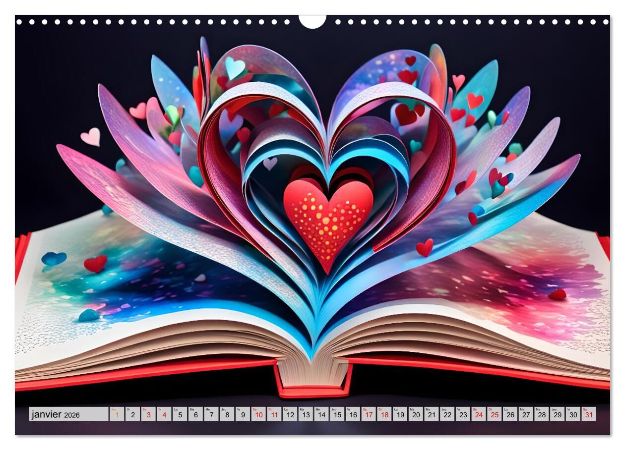 Plongez dans le monde de l'imaginaire avec notre calendrier exclusif, qui a pris vie grâce à l'intelligence artificielle. Chaque mois, laissez-vous envoûter par la beauté et la magie des coeurs qui jaillissent des pages d'un livre. Ce calendrier...