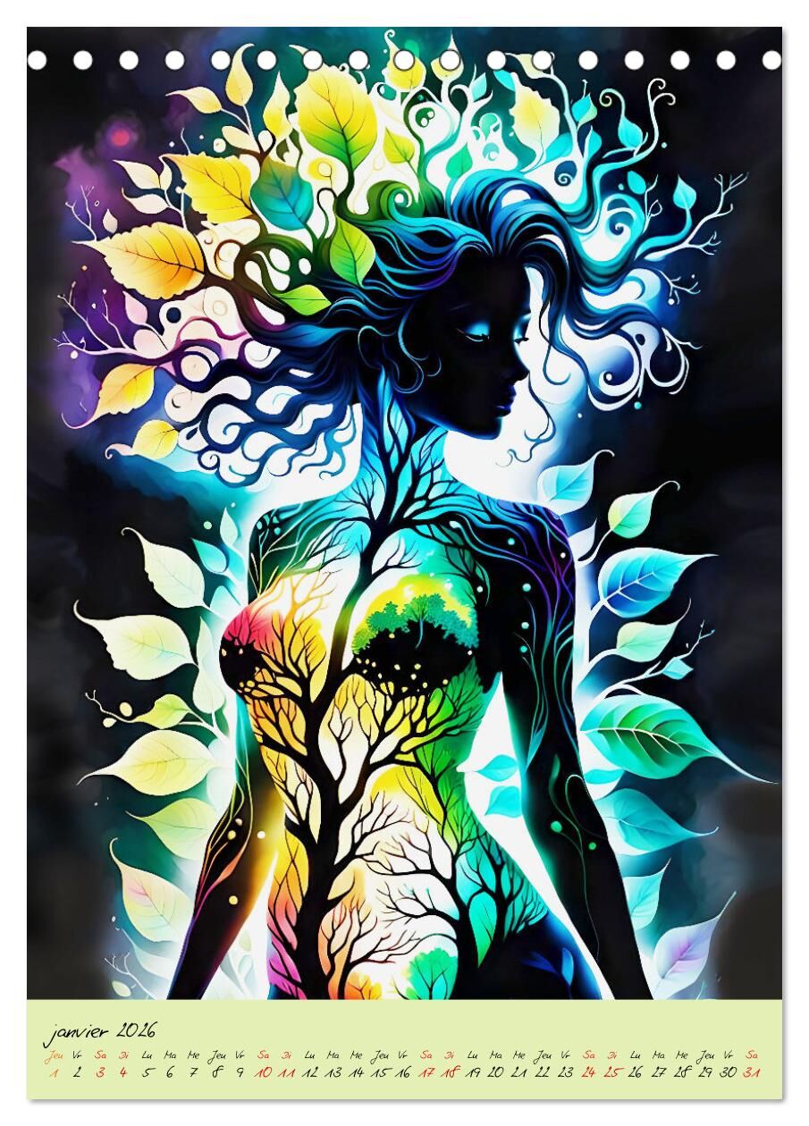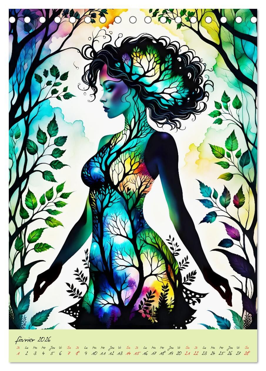 Plongez dans le monde de la nature et de la beauté avec notre calendrier exclusif, créé par la puissance de l'intelligence artificielle. Chaque feuille déploie une silhouette de femme unique, peinte avec art avec des éléments de la nature. Mois après mois...