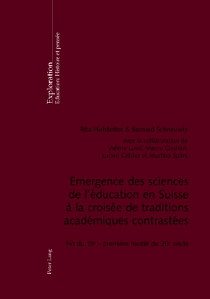 Contenu : R. Hofstetter/B. Schneuwly : Introduction générale - L. Criblez : Zurich : un champ disciplinaire composite pour des formations professionnelles différenciées (1857-1949) - M. Späni : Berne : par-delà quelques soubresauts, une très lente institutionnalisation (1870-1950) - S. Campana/L. Criblez : Bâle : débuts précoces et prometteurs, externalisation et déclin (1870-1950) - R. Hofstetter : Genève : de la pédagogie comme science morale aux sciences de l'éducation. Le déploiement d'un champ (pluri)disciplinaire (1890-1950) - M. Cicchini/V. Lussi : Lausanne : un champ disciplinaire entre développement autonome et pressions locales (1880-1951) - V. Lussi/M. Cicchini : Fribourg : le pari d'une Université catholique suisse et son influence sur le champ disciplinaire (1889-1951) - V. Lussi : D'une section de pédagogie académique à une discrète présence universitaire à Neuchâtel (1866-1953) - M. Späni : Former des enseignants du commerce : l'intégration de la pédagogie dans la Handelshochschule de Saint-Gall (1912-1950) - S. Campana/L. Criblez : Pour éviter l'unilatéralité technique et former des enseignants de sciences : la pédagogie à l'Ecole polytechnique de Zurich (1866-1950) - R. Hofstetter/B. Schneuwly : Le paysage helvétique : des configurations contrastées dans des contextes culturels variés - V. Lussi/L. Criblez : Sciences de l'éducation et inscriptions universitaires des formations à l'enseignement : conditionnements réciproques - V. Lussi : La pédagogie curative : un champ spécifique ? - A. Thomann/B. Schneuwly/V. Lussi : L'orientation professionnelle et les sciences de l'éducation : deux voies contrastées - R. Hofstetter/B. Schneuwly/L. Criblez : Approches empiriques de l'éducation - M. Cicchini : Acteurs et réseaux des sciences de l'éducation : du local à l'international - M. Späni : Socialisations en sciences de l'éducation : entre logiques disciplinaire et professionnelle - D. Périsset Bagnoud/B. Schneuwly/R. Hofstetter : Infrastructures éditoriales et formes cognitives des sciences de l'éducation - R. Hofstetter/B. Schneuwly : Conclusion générale.