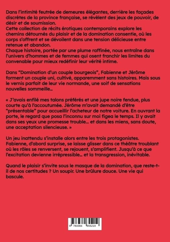 Dans l'intimité feutrée de demeures élégantes, derrière les façades discrètes de la province française, se révèlent des jeux de pouvoir, de désir et de soumission.Cette collection de récits érotiques contemporains explore les chemins détournés du plaisir ...