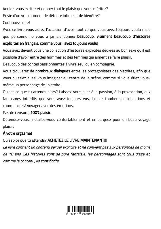Voulez-vous exciter et donner tout le plaisir que vous méritez?Envie d'un vrai moment de détente intime et de bienêtre?Continuez à lire!Avec ce livre vous aurez l'occasion d'avoir tout ce que vous avez toujours voulu mais que personne ne vous a ...