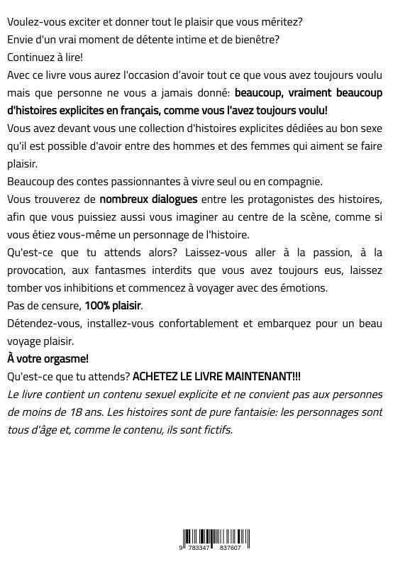 Voulez-vous exciter et donner tout le plaisir que vous méritez?Envie d'un vrai moment de détente intime et de bienêtre?Continuez à lire!Avec ce livre vous aurez l'occasion d'avoir tout ce que vous avez toujours voulu mais que personne ne vous a ...