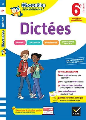 Dictées 6e Ton cahier Dictées 6e pour t'entraîner à ton rythme Des rappels de cours visuels et efficaces Des dictées préparées pas à pas Des astuces et des coups de pouce pour progresser Un test de positionnement initial Tous les corrigés et des infos parents...