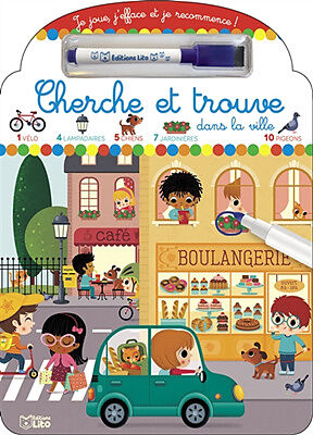 L'enfant s'amuse à chercher, compter, puis entourer avec un feutre effaçable jusqu'à 10 petits éléments cachés dans des scènes colorées et animées !