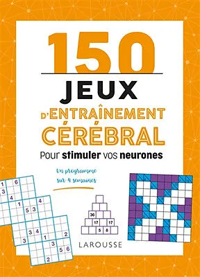150 jeux d'entraînement cérébral Tester votre logique, vous cultiver, développer votre mémoire et réveiller votre vivacité d'esprit, c'est le programme qui vous est proposé ici. Au fil des pages, vous stimulerez vos neurones tout en vous amusant. Les jeux que...