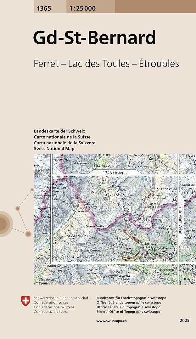 The most accurate and detailed topographic map of Switzerland for hikers, alpinists, vacationers, individualists and adventurers. - Complete and differentiated rail, road and route networks. - Detailed representations of settled areas, hydrography, vegetation ...