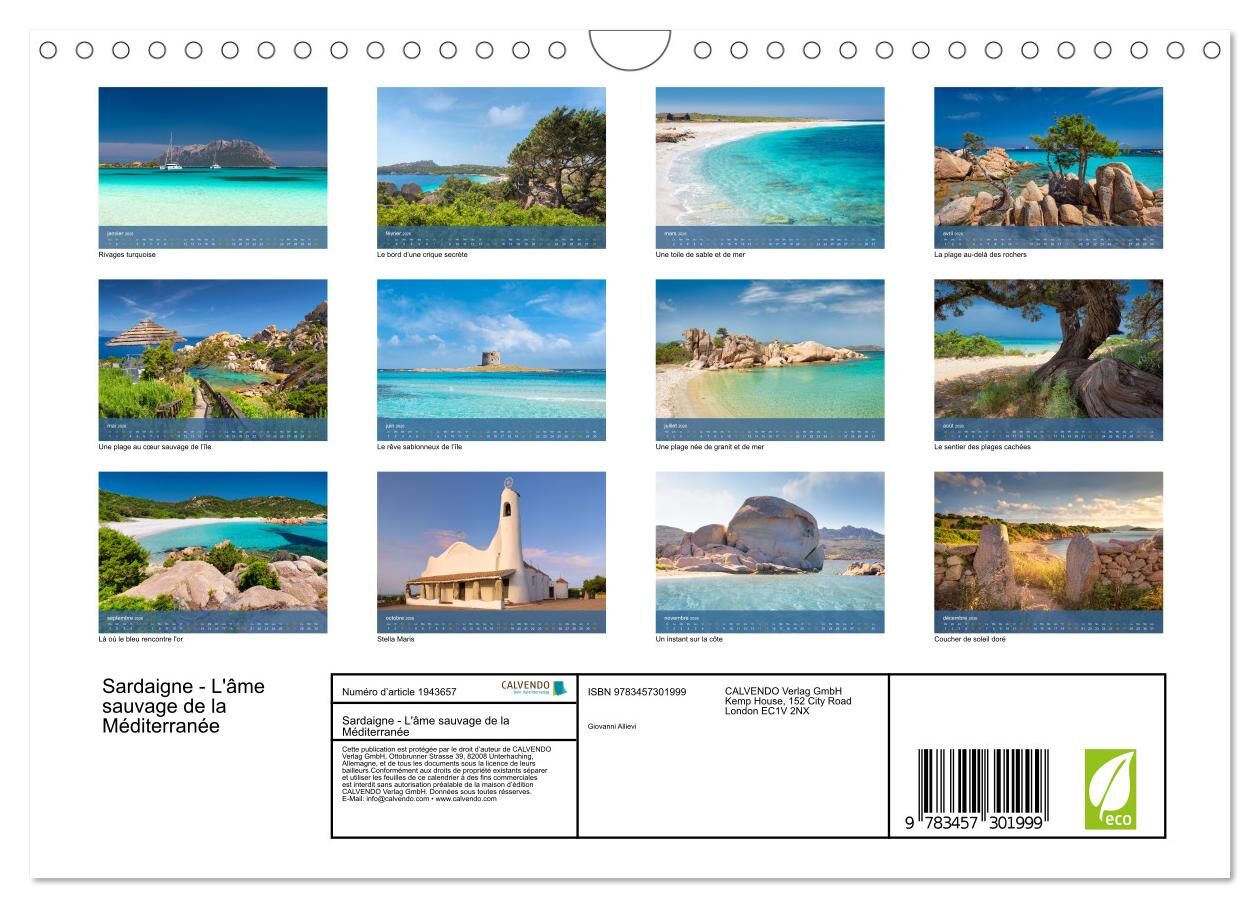 Révélez l'explorateur qui sommeille en vous avec "Sardaigne - L'âme sauvage de la Méditerranée". Ce calendrier n'est pas seulement une série d'images, c'est un voyage au coeur de l'âme de la Sardaigne. Découvrez la beaut...Révélez l'explorateur qui sommeille en vous avec "Sardaigne - L'âme sauvage de la Méditerranée". Ce calendrier n'est pas seulement une série d'images, c'est un voyage au coeur de l'âme de la Sardaigne. Découvrez la beauté sauvage de l'île : des plages immaculées qui murmurent des histoires anciennes et des paysages accidentés qui reflètent son esprit sauvage. Chaque mois, plongez dans le charme brut et authentique de ce joyau méditerranéen. Sentez le vent, goûtez le sel et découvrez l'esprit intemporel de la Sardaigne. Parfait pour ceux qui ont soif d'aventure et recherchent le coeur d'une île véritablement unique. Apportez l'âme sauvage de la Sardaigne chez vous. Commandez votre calendrier dès aujourd'hui !