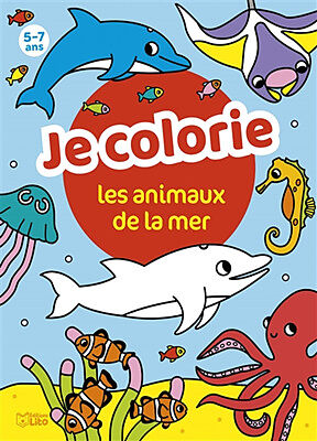 24 scènes représentant des animaux marins dans leur environnement à colorier, avec des informations sur les espèces représentées. Un modèle en couleurs accompagne chaque coloriage.