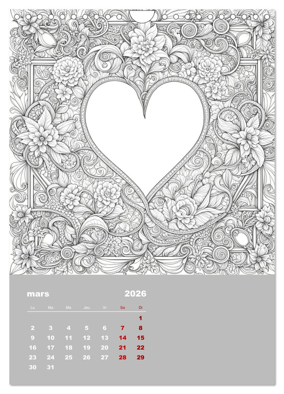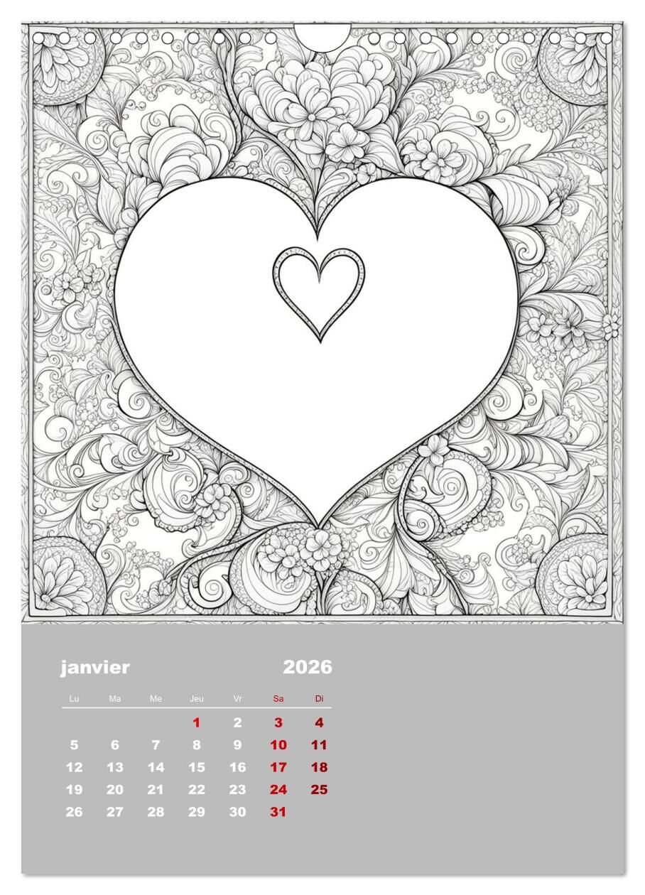 Coloriage (Calendrier mural 2026 DIN A4 horizontal), CALVENDO calendrier mensuel