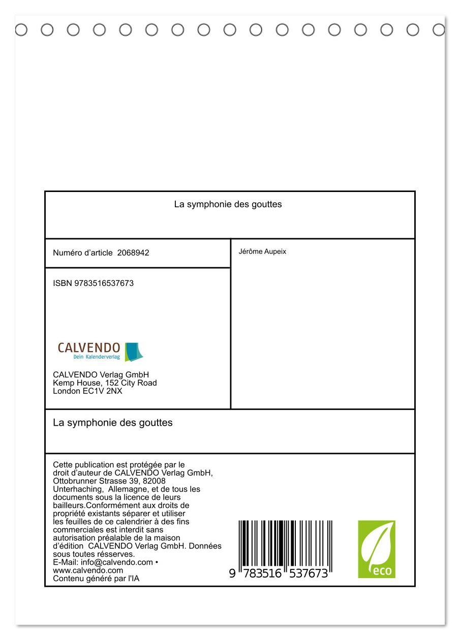 La symphonie des gouttes (Calendrier de bureau 2026 DIN A5 horizontal), CALVENDO calendrier mensuel