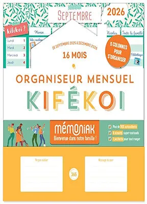 Un calendrier avec une double page par mois et des autocollants pour répartir les tâches ménagères à la maison. Des conseils et des astuces sur l'entretien quotidien pour détartrer, rendre son linge plus doux ou nettoyer les miroirs sont également fournis.