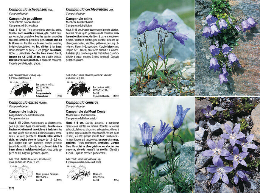Pratiquement toutes les plantes à fleurs et les fougères sauvages en Suisse sont illustrées par une ou deux excellentes photos en couleur et décrites dans un texte précis. La description de l'espèce comprend le nom scientifique, allemand, français, italien et romanche, les caractéristiques les plus importantes, les exigences écologiques, la fréquence et la répartition en Suisse, ainsi que d'autres informations telles que le degré de menace, la toxicité, l'utilisation pharmaceutique et la protection légale.